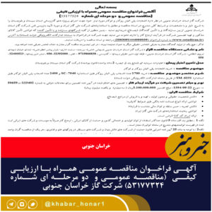 آگهی فراخوان مناقصه عمومی همراه با ارزیابی کیفی (مناقصه عمومی و دو مرحله ای شماره ۵۳۱۷۷۳۲۴) شرکت گاز خراسان جنوبی