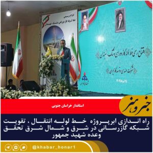 ابرپروژه خط انتقال گاز از دشتک زابل به نهبندان با حضور مدیرعامل شرکت گاز ایران و استاندار خراسان جنوبی با اعتبار ۷۲ هزار میلیارد ریال