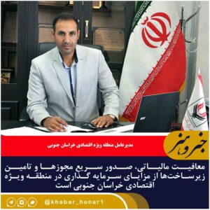مدیرعامل منطقه ویژه اقتصادی خراسان جنوبی گفت: معافیت مالیاتی، صدور سریع مجوزها و تامین زیرساختها از مزایای سرمایه گذاری در منطقه ویژه اقتصادی خراسان جنوبی