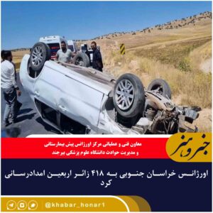 معاون فنی و عملیاتی مرکز اورژانس پیش بیمارستانی و مدیریت حوادث دانشگاه علوم پزشکی بیرجند گفت: ۴۱۸ نفر از زائران اربعین توسط اورژانس استان در