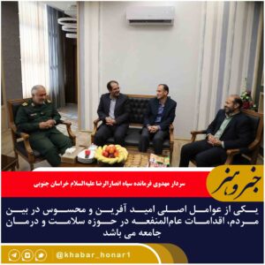 یکی از عوامل اصلی امید آفرین و محسوس در بین مردم، اقدامات عامالمنفعه در حوزه سلامت و درمان جامعه می باشد