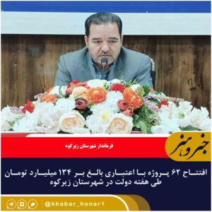افتتاح ۶۲ پروژه با اعتباری بالغ بر ۱۳۴ میلیارد تومان طی هفته دولت در شهرستان زیرکوه