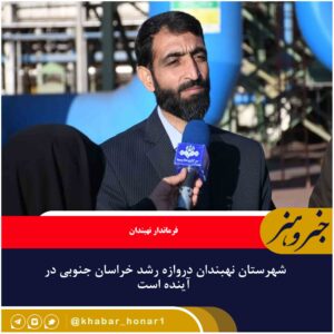 فرماندار نهبندان گفت:شهرستان نهبندان دروازه رشد خراسان جنوبی در آینده بوده و یکی از شهرستان های پر رونق و شکوفا در آینده با توجه به