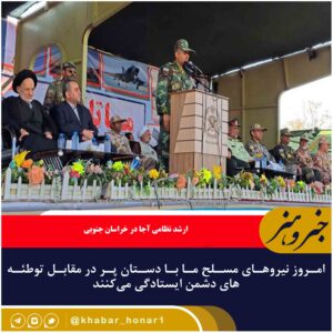 امروز نیروهای مسلح ما با دستان پر در مقابل توطئههای دشمن ایستادگی میکنند