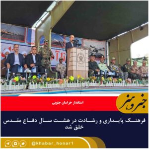 استاندار خراسان جنوبی گفت: اقتدار و عظمت امروز نظام جمهوری اسلامی مرهون ترویج فرهنگ دفاع مقدس است. جواد قناعت روز شنبه در مراسم رژه نیروهای