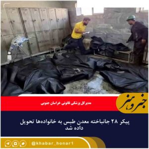 🔹مدیرکل پزشکی قانونی خراسان جنوبی گفت: تاکنون خانواده ۲۸ متوفی حادثه معدن طبس در محل حاضر شده و اجساد را شناسایی و تایید کردهاند همچنین