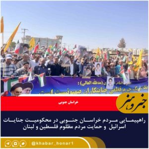 مردم خراسان جنوبی با حضور در راهپیمایی “جمعههای خشم” ضمن محکومیت جنایات رژیم صهیونیستی، بار دیگر با مردم مظلوم فلسطین و لبنان اعلام همبستگی کردند.