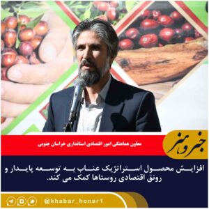 معاون هماهنگی امور اقتصادی استانداری خراسان جنوبی گفت: افزایش محصول استراتژیک عناب به توسعه پایدار و رونق اقتصادی روستاها کمک می کند. مهدی جعفری در