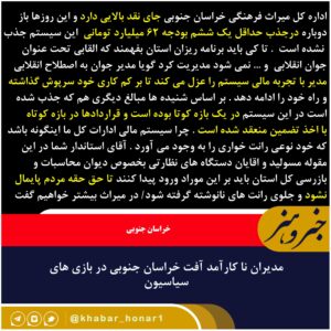 مدیران نا کارآمد آفت خراسان جنوبی در بازی های سیاسیون