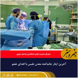 مدیرکل مدیریت بحران استانداری خراسان جنوبی گفت: اعضای بدن یکی از مصدومان حادثه معدن طبس با رضایت خانوادهاش به بیماران نیازمند اهدا شد. محمدعلی آخوندی