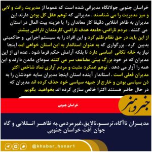 خراسان جنوبی جولانگاه مدیرانی شده است که عموما از مدیریت رانت و لابی و میز مدیریت را می شناسند . مدیرانی که توهم عقل کل
