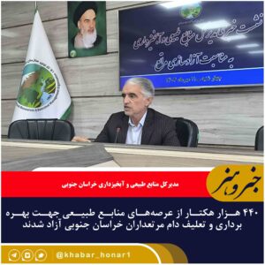 مدیرکل منابع طبیعی و آبخیزداری خراسان جنوبی گفت: از اول مهر ۴۴۰ هزار هکتار از عرصههای منابع طبیعی خراسان جنوبی آزاد شدند. علیرضا نصرآبادی صبح