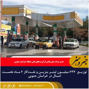 توزیع ۶۳۴ میلیون لیتر بنزین و نفتگاز ۶ ماه نخست امسال در خراسان جنوبی