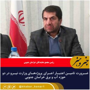 -رئیس مجمع نمایندگان خراسان جنوبی گفت: توجه به تامین اعتبار اجرای پروژههای وزارت نیرو در دو حوزه آب و برق خراسان جنوبی ضروری است. سید