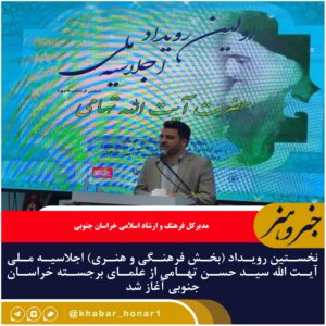 نخستین رویداد (بخش فرهنگی و هنری) اجلاسیه ملی آیت الله سید حسن تهامی از علمای برجسته خراسان جنوبی آغاز شد. این مراسم با حضور معاون