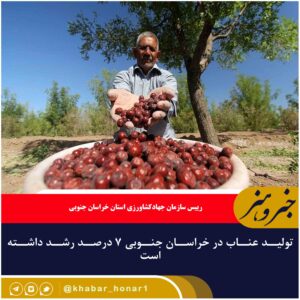 رییس سازمان جهادکشاورزی استان خراسان جنوبی گفت: تولید عناب در خراسان جنوبی ۷ درصد افزایش یافت. محمدحسین اکبری با عنوان اینکه ارزش محصول تولیدی ۹۵۰