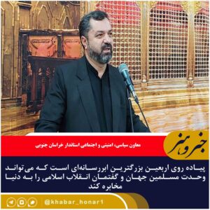 معاون سیاسی، امنیتی و اجتماعی استاندار خراسان جنوبی گفت: شاهد بازتولید گفتمان انقلاب اسلامی در حرکت عظیم پیاده روی اربعین هستیم و این حرکت نتیجه