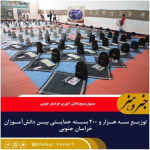 مسئول بسیج دانش آموزی خراسان جنوبی گفت: سه هزار و ۲۰۰ بسته حمایتی شامل نوشت افزار، کیف، کفش و لباس بین دانشآموزان کمبرخوردار استان توزیع