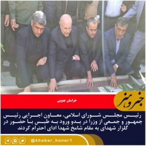 رئیس مجلس شورای اسلامی، معاون اجرایی رئیس جمهور و جمعی از وزرا در بدو ورود به طبس با حضور در گلزار شهدای امامزاده حسینبن موسی