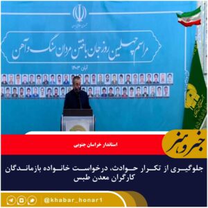 قناعت گفت: یکی از خواستههای خانواده بازماندگان کارگران معدن معدنجوی طبس، جلوگیری از تکرار حوادث مشابه بوده است. قناعت استاندار خراسان جنوبی در مراسم