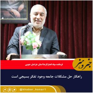 فرمانده سپاه انصارالرضا استان خراسان جنوبی راهکار حل مشکلات جامعه را وجود و ترویج تفکر بسیجی دانست. سردار محمدرضا مهدوی فرمانده سپاه انصار الرضا علیه