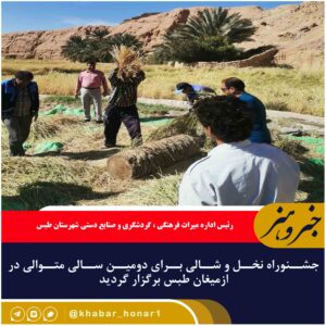 رئیس اداره میراث فرهنگی ، گردشگری و صنایع دستی شهرستان طبس از برگزاری دومین جشنوراه نخل و شالی در روستای هدف گردشگری و منطقه نمونه