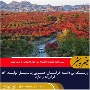 – مدیر مجتمع تحقیقات گیاهان دارویی جهاد دانشگاهی خراسان جنوبی گفت: زرشک بی دانه خراسان جنوبی پتانسیل تولید ۵۳ فرآورده را دارد. محسن پویان، رئیس