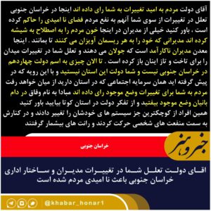 اقای دولت تعلل شما در تغییرات مدیران و ساختار اداری خراسان جنوبی باعث نا امیدی مردم شده است