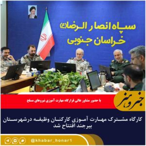 – کارگاه مشترک مهارت آموزی کارکنان وظیفه درشهرستان بیرجند با حضور مشاور عالی فرمانده قرارگاه مرکزی مهارت آموزی کارکنان وظیفه نیروهای مسلح افتتاح شد. سردار
