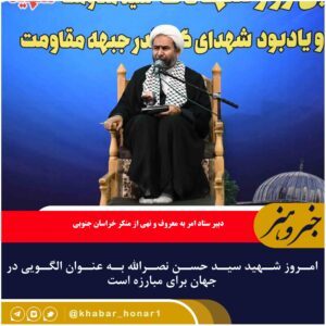 دبیر ستاد امر به معروف و نهی از منکر خراسان جنوبی گفت: امروز شهید سید حسن نصرالله به عنوان الگویی در جهان برای مبارزه است.