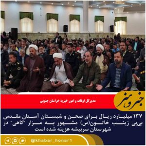 مدیرکل اوقاف و امور خیریه خراسان جنوبی گفت: ۱۳۷ میلیارد ریال برای صحن و شبستان آستان مقدس بیبی زینب خاتون(س) مشهور به مزار “کاهی” در