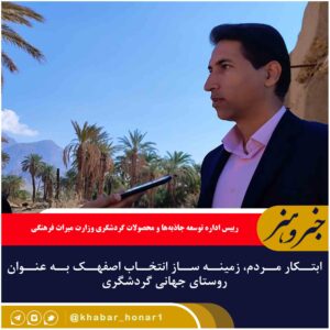 رییس اداره توسعه جاذبهها و محصولات گردشگری وزارت میراث فرهنگی گفت:روحیه امیدواری مردم اصفهک و ابتکاراتشان یکی از ملاکهای مهم برای انتخاب روستا به عنوان
