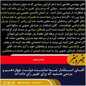 آقای استاندار شما نماینده دولت چهاردهم و مردمی هستید که برای تغییر رای داده اند