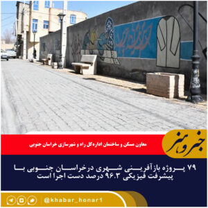 ۷۹ پروژه بازآفرینی شهری درخراسان جنوبی با پیشرفت فیزیکی ۹۶.۳ درصد دست اجرا است