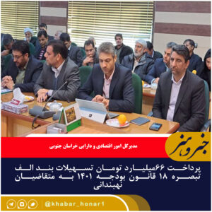 پرداخت ۶۶میلیارد تومان تسهیلات بند الف تبصره ۱۸ قانون بودجه ۱۴۰۱ به متقاضیان نهبندانی