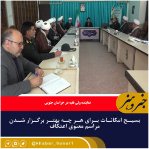 نماینده ولی فقیه در خراسان جنوبی خواستار بسیج همه امکانات برای هر چه بهتر برگزار شدن مراسم معنوی اعتکاف شد. نماینده ولی فقیه در استان