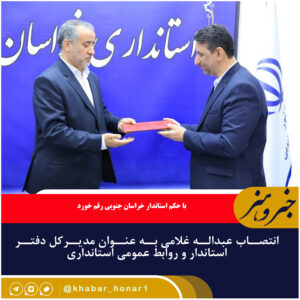 🔹عبداله غلامی به عنوان مدیرکل دفتر استاندار و روابط عمومی استانداری خراسان جنوبی، منصوب شد. سید محمدرضا هاشمی طی حکمی، عبداله غلامی را به عنوان