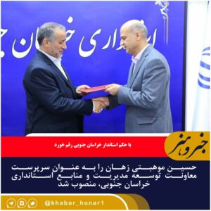 حسین موهبتی زهان را به عنوان سرپرست معاونت توسعه مدیریت و منابع استانداری خراسان جنوبی، منصوب شد