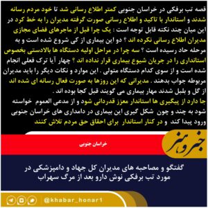 قصه تب برفکی در خراسان جنوبی کمتر اطلاع رسانی شد تا خود مردم رسانه شدند و استاندار با تاکید و اطلاع رسانی صورت گرفته مدیران