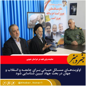 نماینده ولی فقیه در خراسان جنوبی گفت: اولویتهای مسائل حیاتی برای جامعه و انقلاب و جهان در بحث جهاد تبیین شناسایی شود. آیتالله سیدعلیرضا عبادی