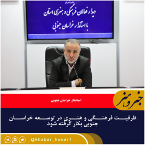 استاندار خراسان جنوبی بر استفاده از ظرفیتهای فرهنگی و هنری استان در معرفی استعدادها و پتانسیلهای گردشگری، صنعتی و توسعه همه جانبه استان تاکید کرد.
