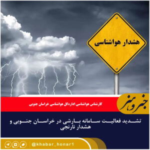 تشدید فعالیت سامانه بارشی در خراسان جنوبی و هشدار نارنجی