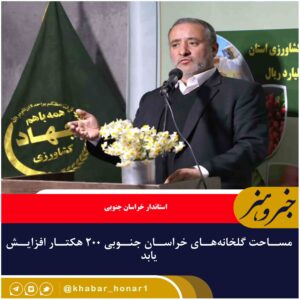 استاندار خراسان جنوبی خواستار افزایش مساحت ۲۰۰ هکتاری گلخانههای خراسان جنوبی شد. سید محمد رضا هاشمی در مراسم افتتاح واحد گلخانهای شهید رحمانی خوسف در