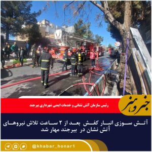 رئیس سازمان آتش نشانی و خدمات ایمنی شهرداری بیرجند گفت: حادثه آتش سوزی انبار کیف و کفش در خیابان معلم بیرجند بعد از ۲ ساعت