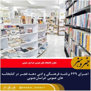 اداره کل کتابخانههای عمومی استان خراسان جنوبی به مناسبت ایام الله دهه دهه فجر، با برگزاری ۴۳۹ برنامه فرهنگی، نقش مهمی در ترویج فرهنگ و