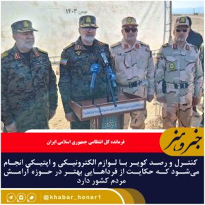 فرمانده کل انتظامی جمهوری اسلامی ایران گفت: کنترل و رصد کویر با لوازم الکترونیکی و اپتیکی انجام میشود که حکایت از فرداهایی بهتر در حوزه