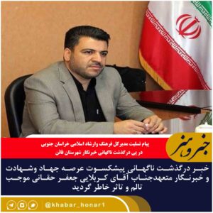 پیام تسلیت مدیرکل فرهنگ وارشاد اسلامی خراسان جنوبی در پی درگذشت ناگهانی خبرنگار شهرستان قائن