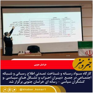 کارگاه سواد رسانه و شناخت تمدنی اطلاع رسانی و شبکه اجتماعی در جمع دبیران احزاب و تشکل های سیاسی ،و کنشگران سیاسی – رسانه ای خراسان جنوبی برگزار شد