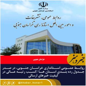 روابط عمومی استانداری خراسان جنوبی، در صدر جدول رده بندی استان ها 🔸کسب رتبه عالی در کیفیت خبرهای ارسالی 🔹روابط عمومی استانداری خراسان جنوبی با