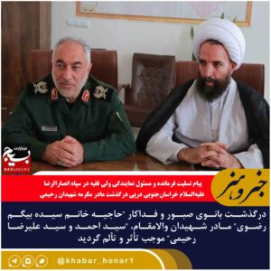 پیام تسلیت فرمانده و مسئول نمایندگی ولی فقیه در سپاه انصارالرضا علیهالسلام خراسانجنوبی درپی درگذشت مادر مکرمه شهیدان رحیمی